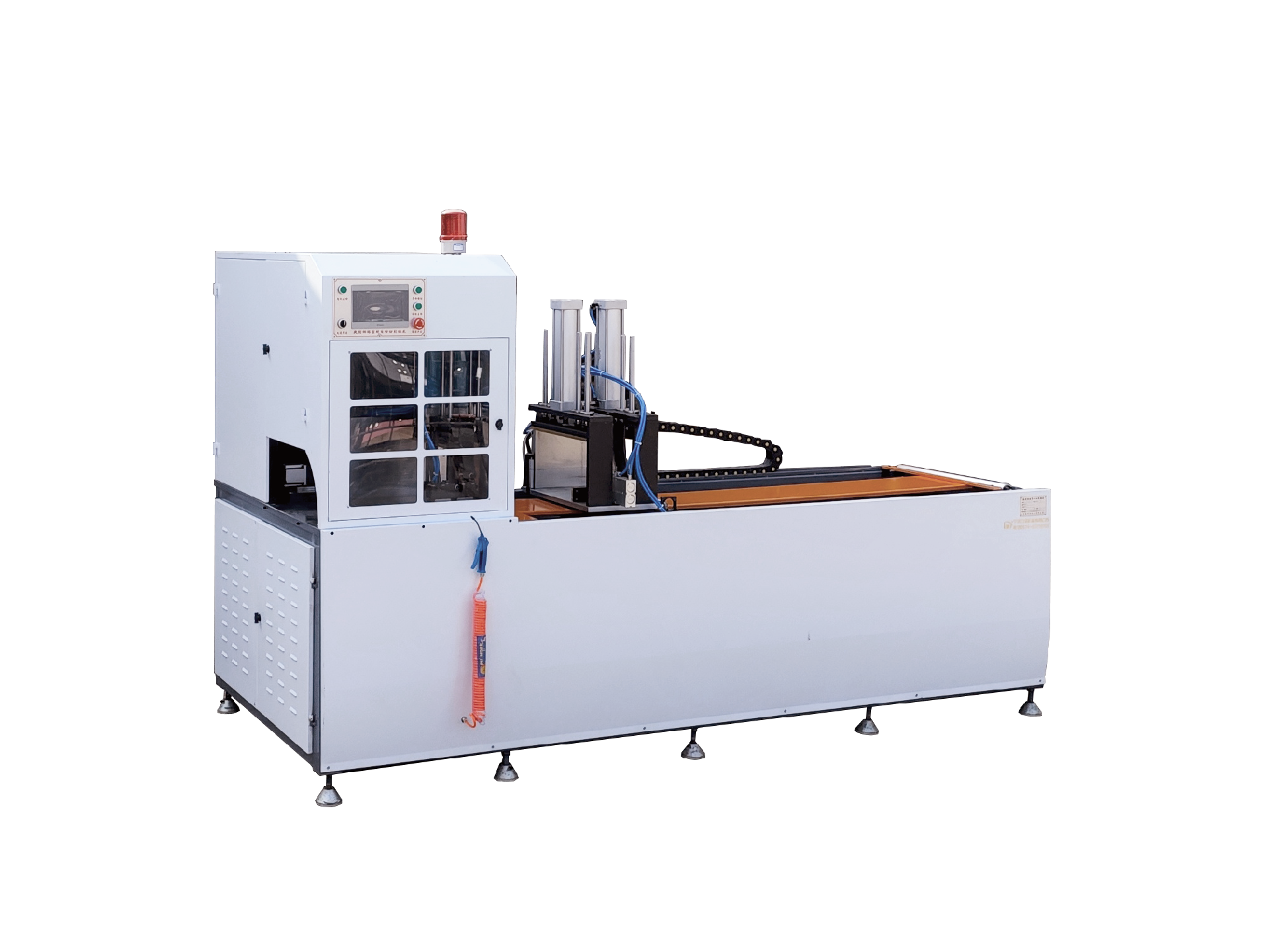 4、壓料系統(tǒng)采用精密滑軌帶動(dòng),由獨(dú)立空壓缸控制,壓料穩(wěn)定性高(可依據(jù)材料類(lèi)型調(diào)整壓料壓力,防止重壓而造成材料損傷)可依據(jù)材料大小及厚度,設(shè)定壓料高度、速度及鋸切速度。